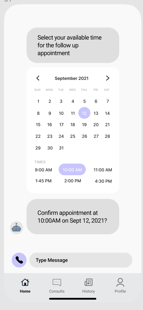 - Scheduling next consult (Fig 4): to increase user retention by providing transparency of benefits of next session
